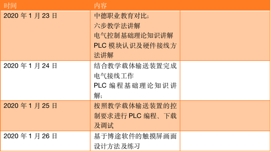 本次培训由中德天坤尊龙时凯教育提供全程教学服务,,在接下来的5天培训时间里,,中德天坤尊龙时凯教育给学员们进行德国双元制教育的介绍、、、、项目制教学法解析以及以推送装置项目为载体讲解机电专业内容等多维度培训。。